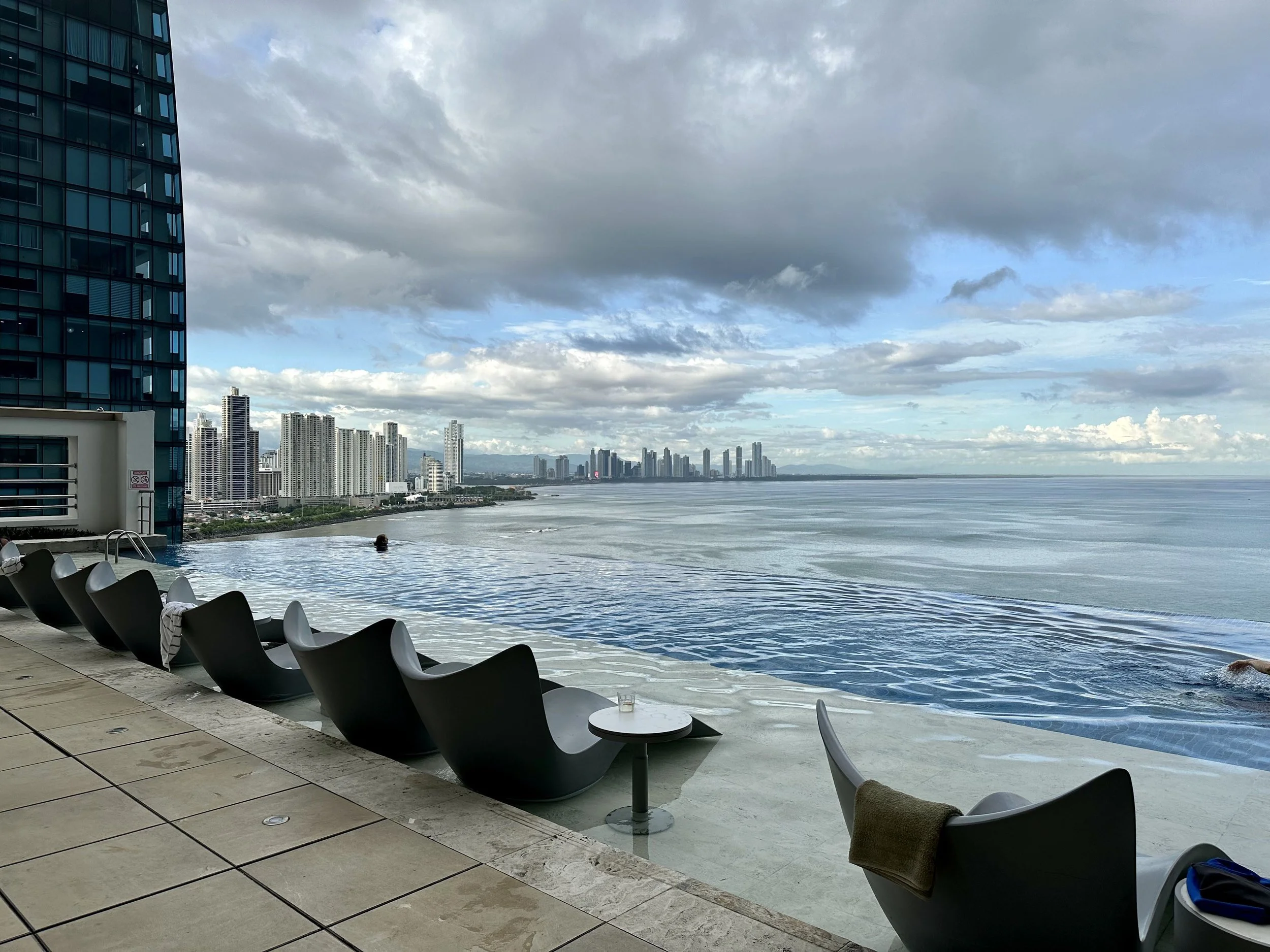 Upper-level infinity pool overlooking Panama City and the Pacific.